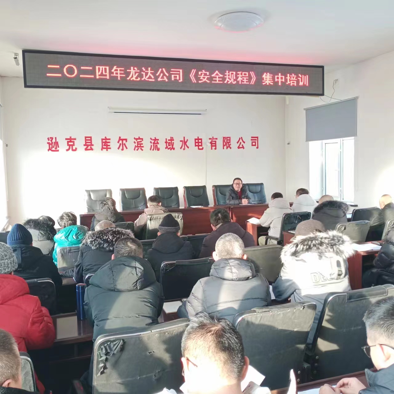 2024年1月8日龙达水电公司利用冬季枯水期,在公司县办公楼三楼会议室,对1月7日开始休班的乙班一线(检修、集控、各电厂)生产人员进行《安全规程》集中培训,由安监部部长吕文海担任培训教师。